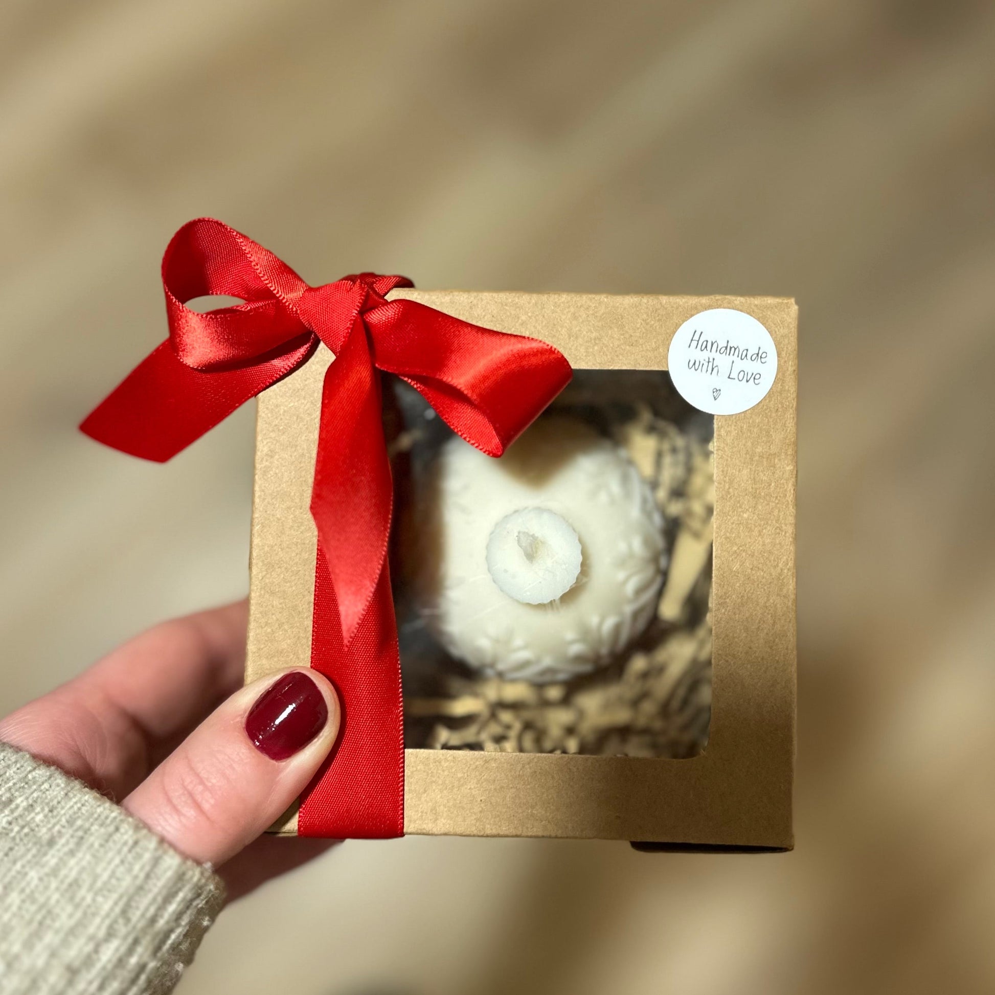 Soijavahakynttilä lahjalaatikossa.